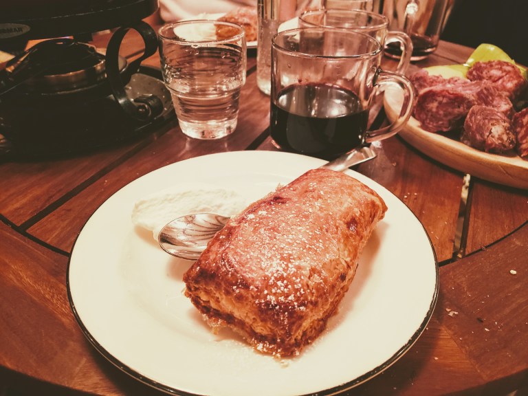 Dessert was a fried apple pie with whipped cream. Not very easy to eat when you’re so full, but I’ll always make an exception for dessert.